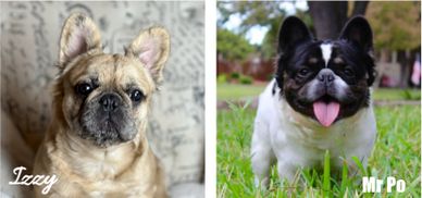 Mr Po is a Mount Olympus Frenchies black with tan points pied visual fluffy stud who has a very calm and affectionate temperament. He is healthy with great structure, and is small and compact and very athletic. He is OFA tested for heart, hips, trachea, patella, and spine.