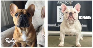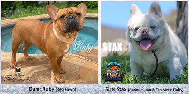 Flashy's Ruby (red fawn) has been bred with an amazing Champion white lilac tan pied stud named Iceman from Crowd Pleazer's Frenchies (OFA EVALUATED NORMAL Hips/Heart/Patellas). This is Ruby's third and final litter.