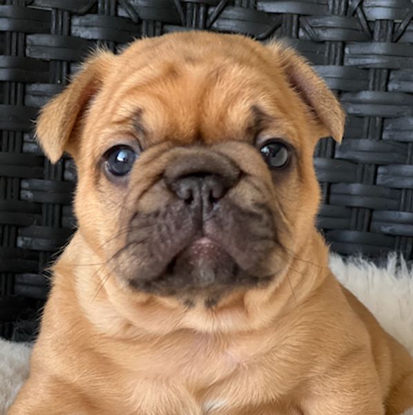This chunky red fawn boy is super inquisitive and full of wrinkles. He is a rarer fawn shade (light red) that you do not see as often as standard fawn. He will make an excellent breeding candidate and carries great DNA.