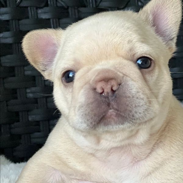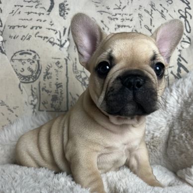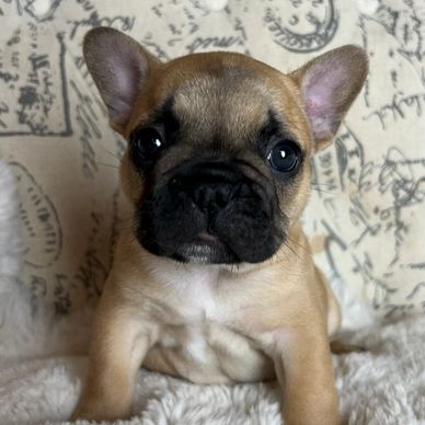 This little teddy bear is a standard fawn color with a black mask. He is the most compact boy in the litter with a thick and stocky build. He's quick on his feet and super affectionate. He will be ready to go home August 1, 2024.