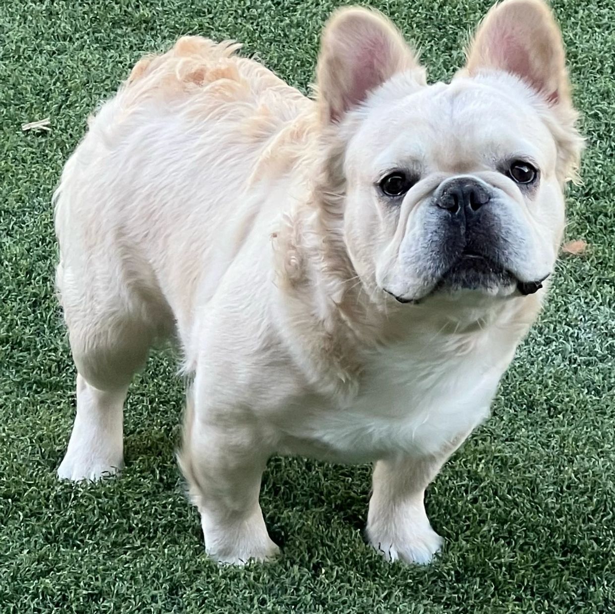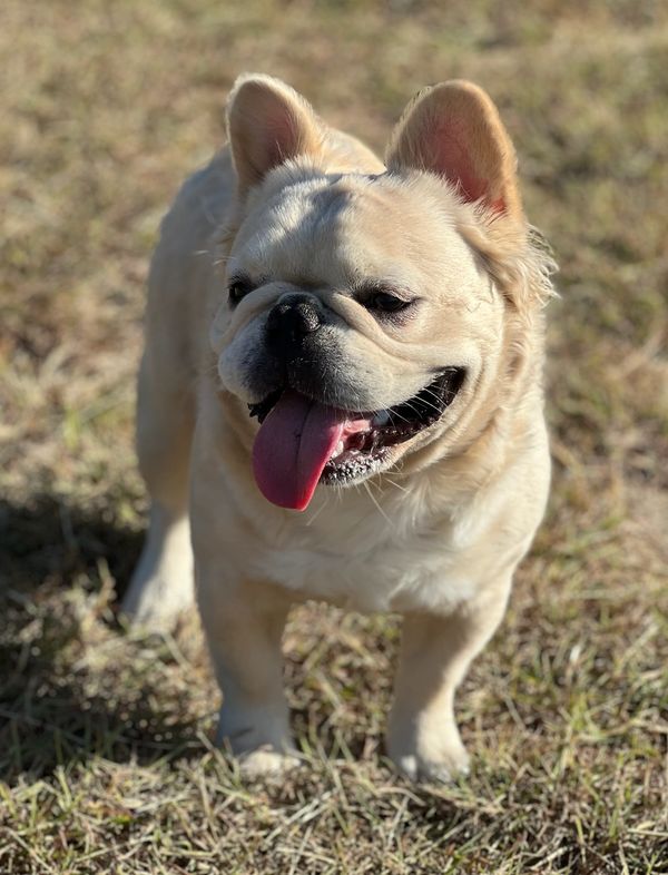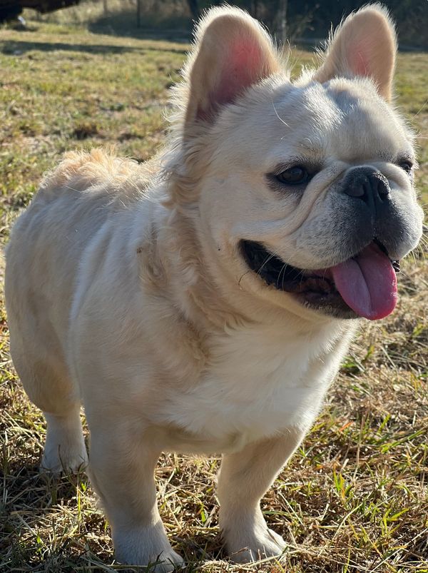Flashy's Polar Bear ("Polar") is a fourth generation Flashy Frenchie from our Izzy X Mr Po litter. He comes from amazing bloodlines including our own, Mount Olympus Frenchies (Mr. Po, dad), and Pinerock French Bulldogs (Stax, grandfather). He is a fawn merle covered in cream, and carries tan points and pied (No brindle). He is super stocky with a great block head, nice earset, ideal almond shaped eyes, and a beautiful soft and slightly curly long-haired coat. He has an outgoing temperament, loves everyone he meets - both human and other dogs. He is playful, smart, and easy to train.